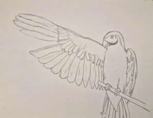 A thing I AM better at is getting proportions right; I’m pretty pleased with this parrot (I have never drawn this many birds in my LIFE, wtf is it with birds in these practice things???):